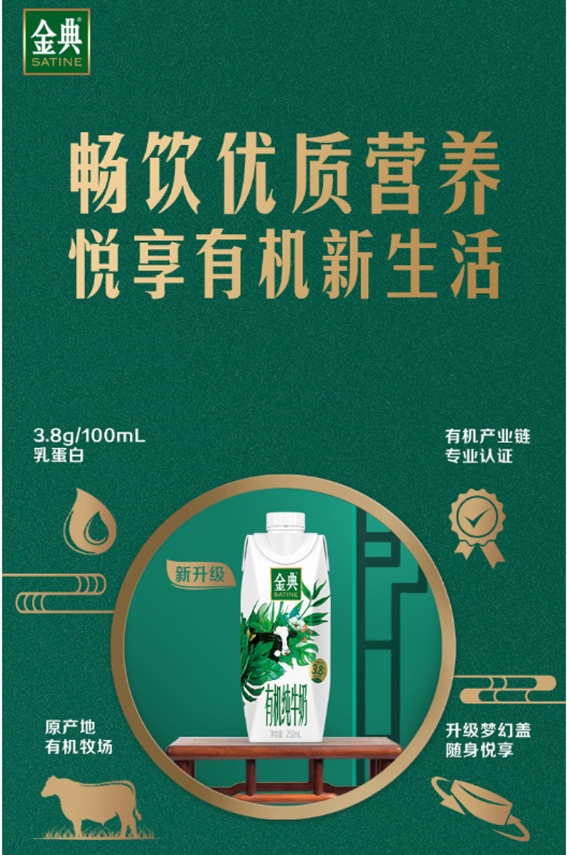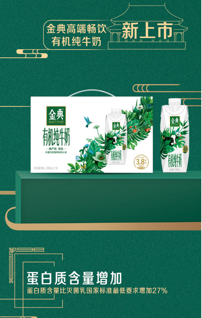 商品名称:伊利 金典有机全脂纯牛奶3.8g乳蛋白(梦幻盖)250ml*10盒(单位:箱)