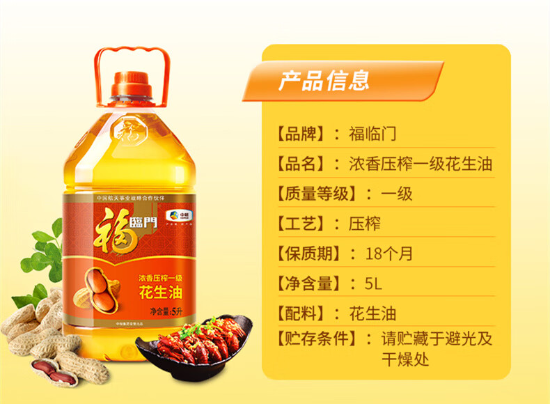 商品名称:福临门 浓香压榨一级花生油5L(单位:瓶)