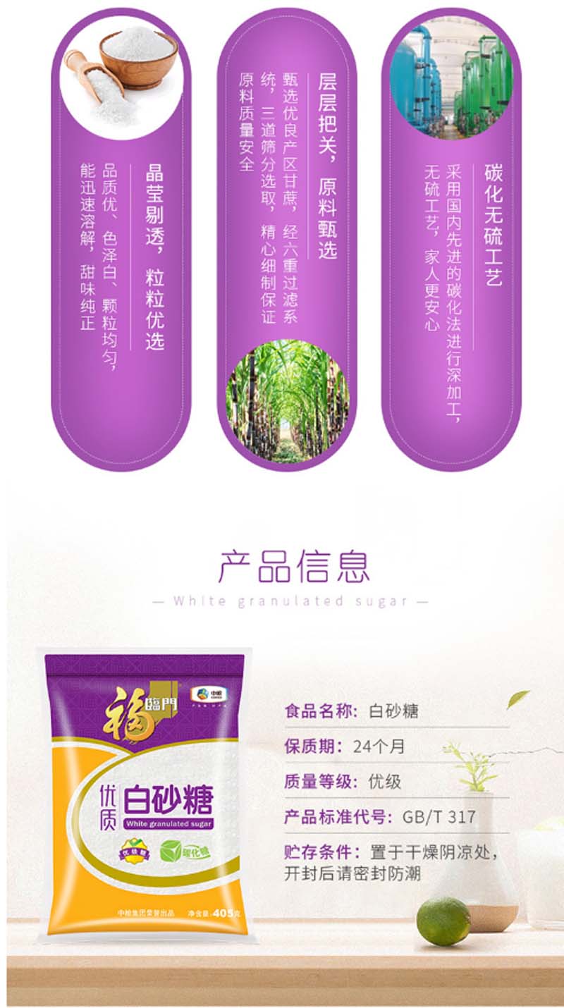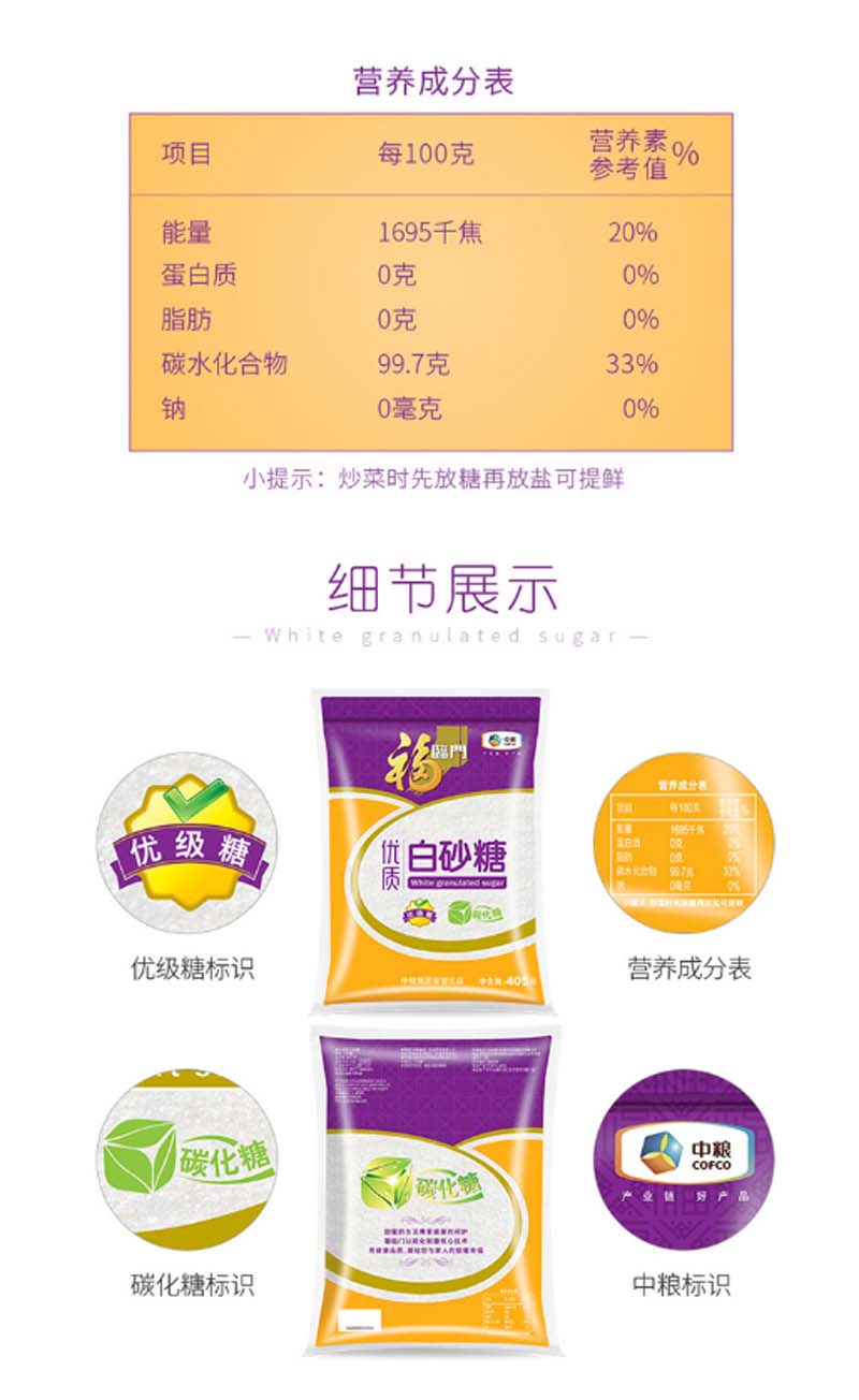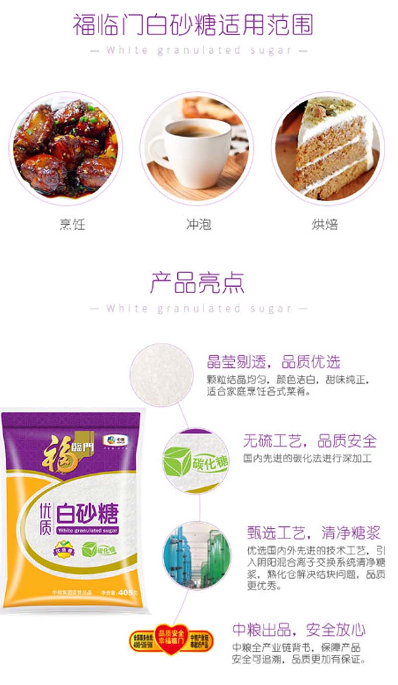 商品名称:福临门-优级白砂糖白糖碳化糖调味糖-405g-单位:袋