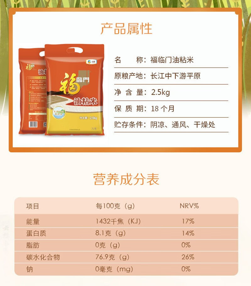 商品名称:福临门 油粘米2.5kg(单位:袋)