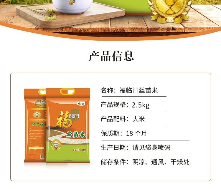 商品名称:福临门 丝苗米2.5kg(单位:袋)