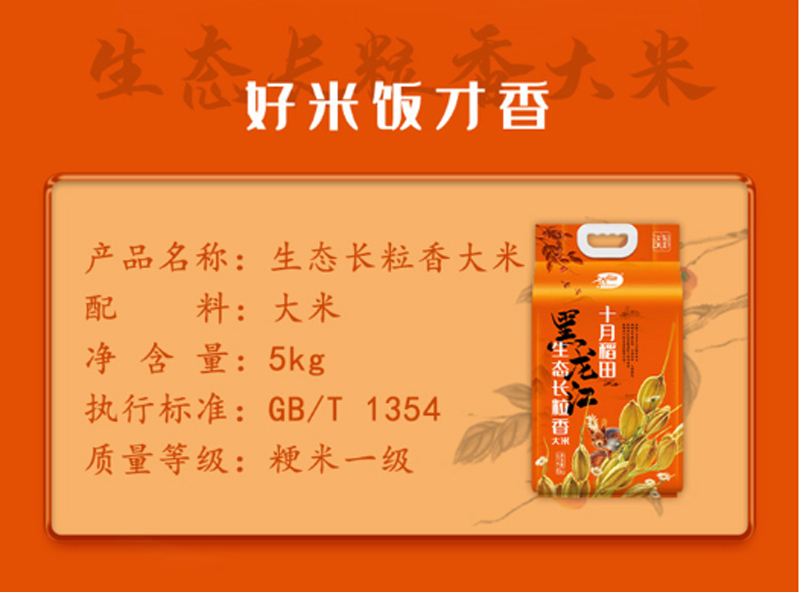 商品名称:十月稻田-生态长粒香大米-5kg-单位:袋- 起订量400袋