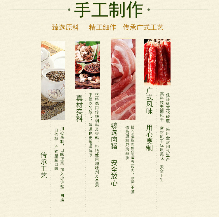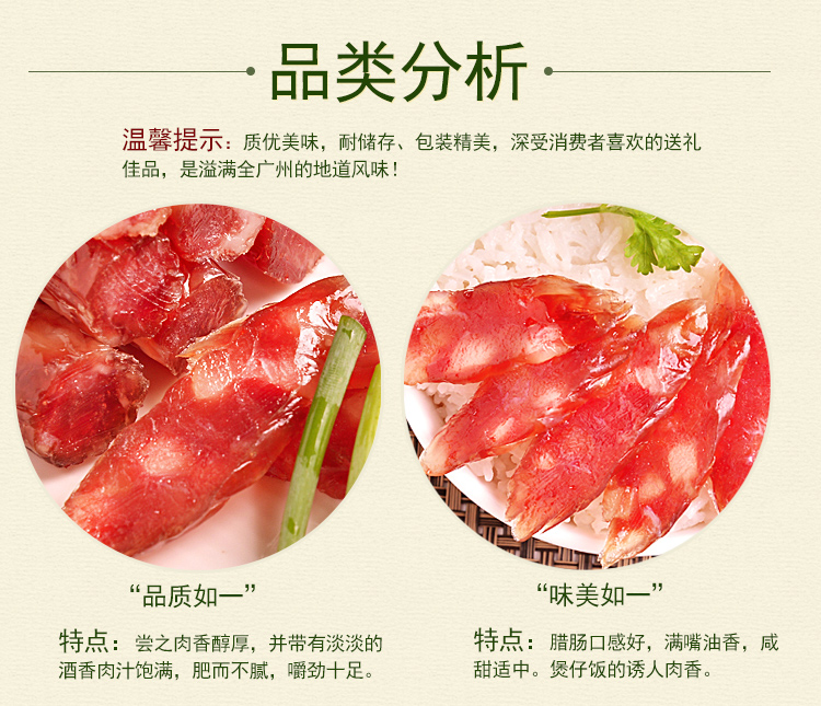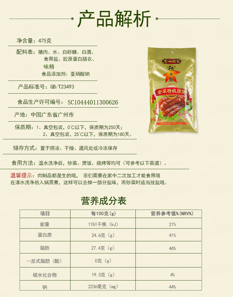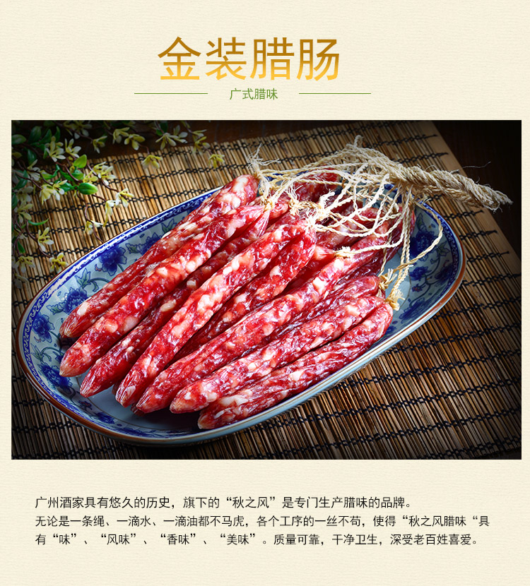 商品名称:广州酒家 金装特级腊肠475g (单位:袋) 100盒起订