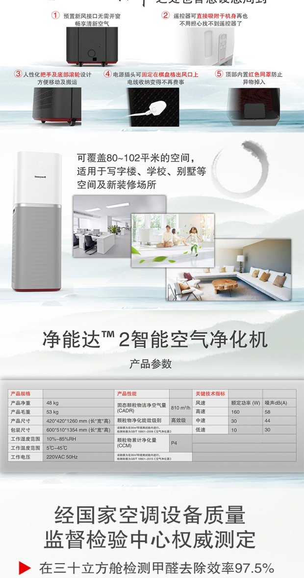 商品名称:霍尼韦尔 空气净化器除雾霾甲醛 KJ810G93W/G