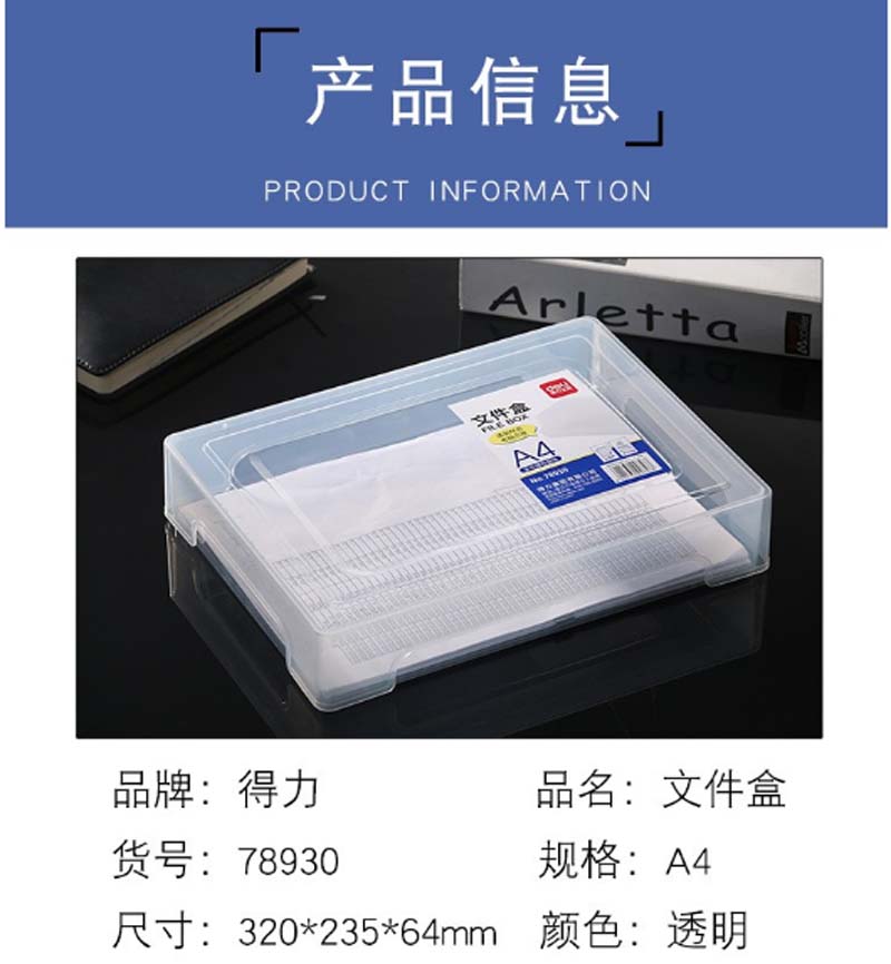 商品名称:得力 78930文件盒(透明本色)(单位:只)