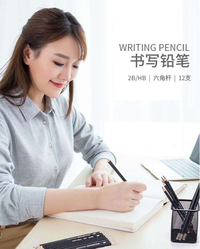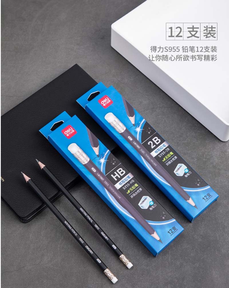 得力 S955-2B_黑杆办公皮头2B铅笔(黑)(12支/盒)(单位:支)