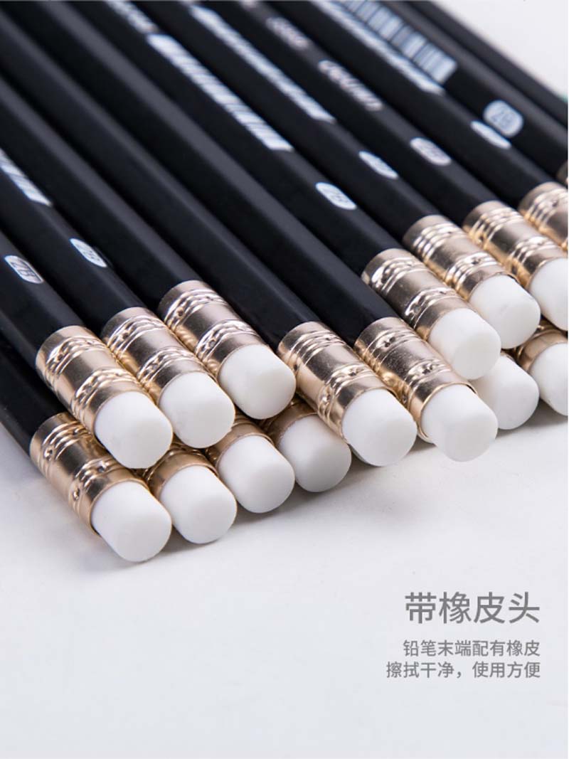 商品名称:得力 S955-2B_黑杆办公皮头2B铅笔(黑)(12支/盒)(单位:支)