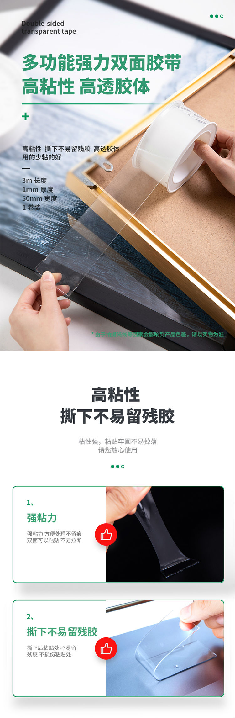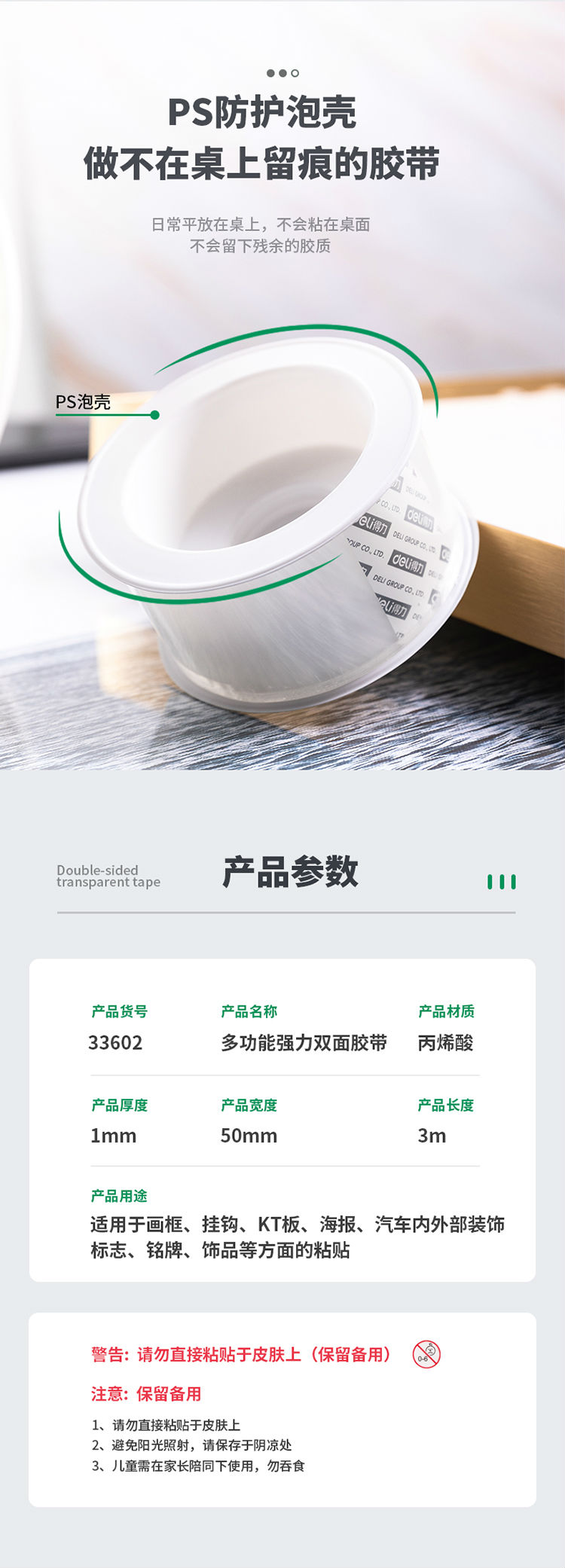 商品名称:得力-33602-双面透明胶带-5cm*3m*1mm-(透明)1卷/盒-单位:盒-起订量2盒