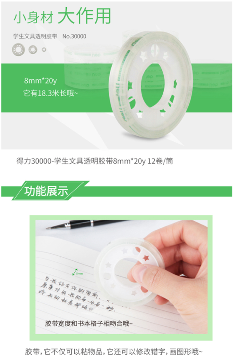 得力30011文具胶带12mm*14y*38um(12卷/筒)(单位:筒)