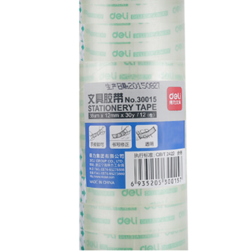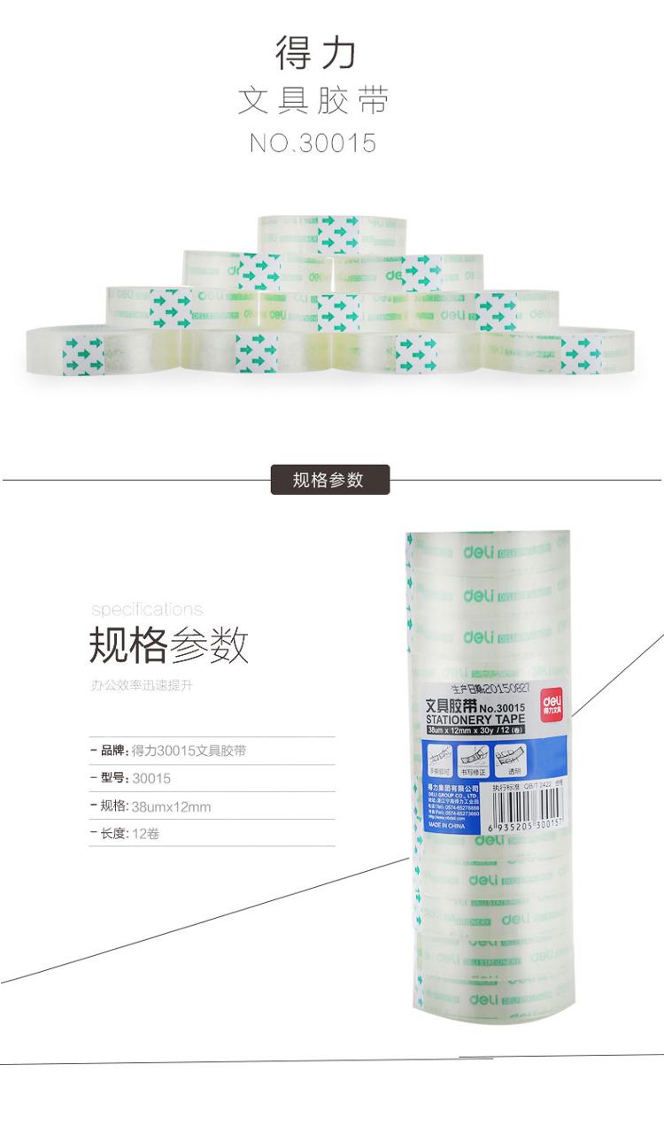 商品名称:得力30015文具胶带12mm*30y*38um(12卷/筒)(单位:筒)