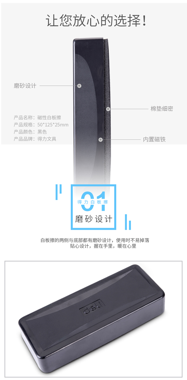 商品名称:得力-7834-白板擦-125*50*26-黑-单位:个-起订量5个