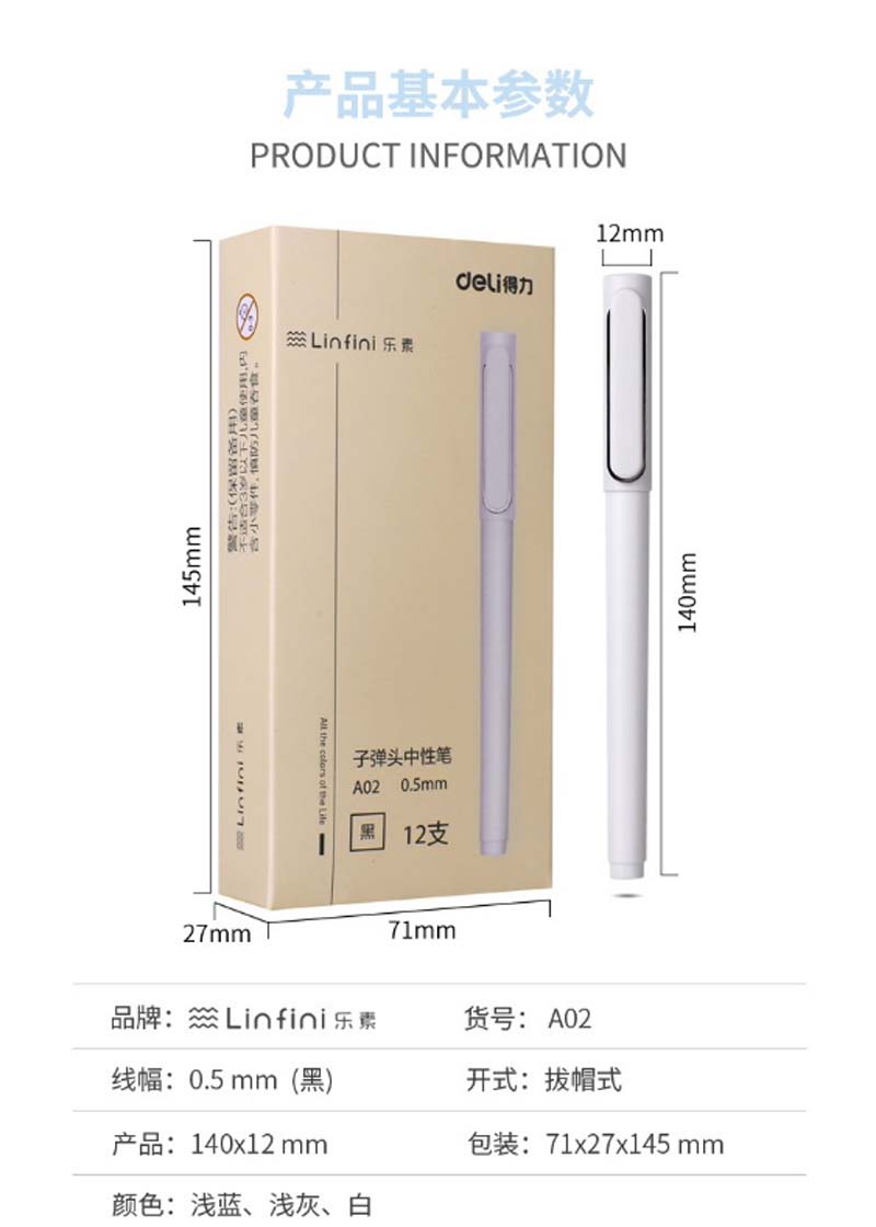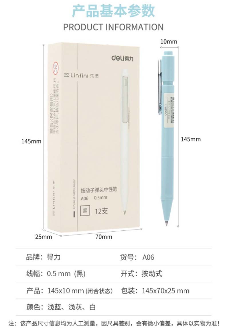 商品名称:得力 A01办公中性笔0.5mm子弹头(黑)(单位:支)