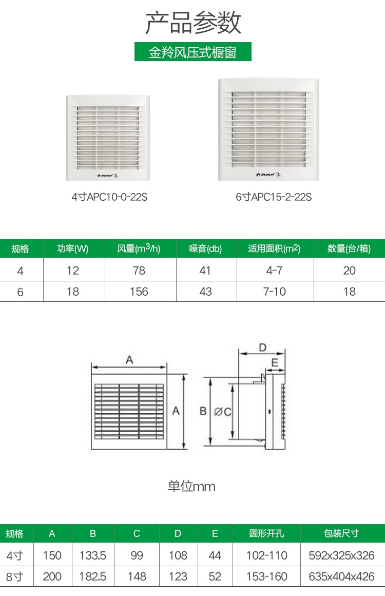 商品名称:金羚 6寸墙壁窗式排气扇 APC15-2-22S
