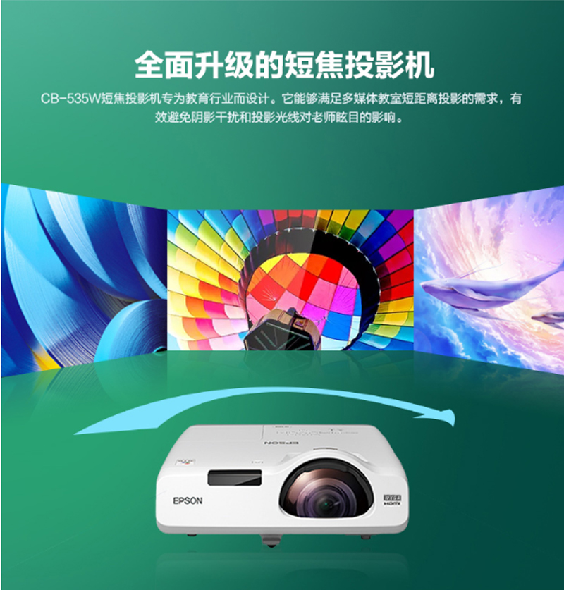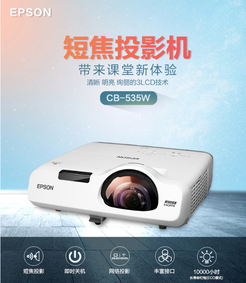 爱普生(EPSON)-CB-535W-短焦投影仪-商用办公教育-(高清 3400流明 支持手机同步 含安装) 单位:台