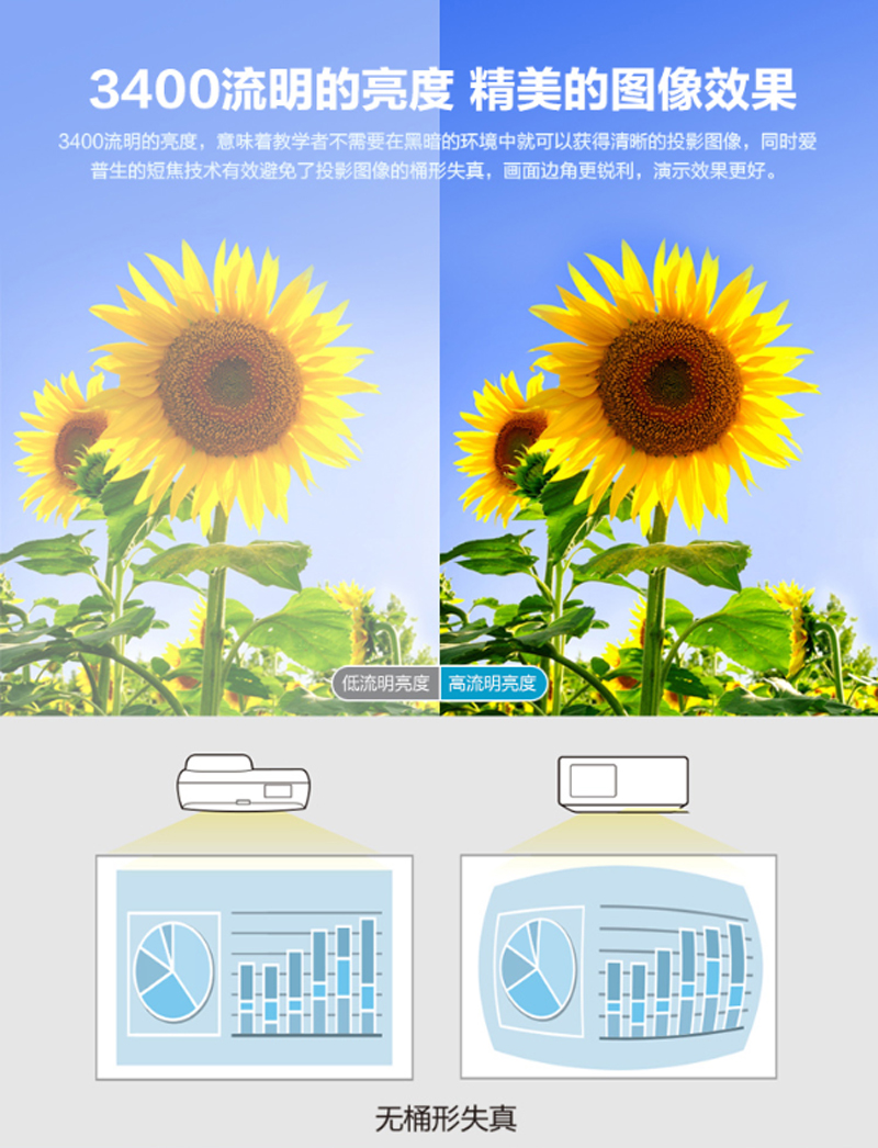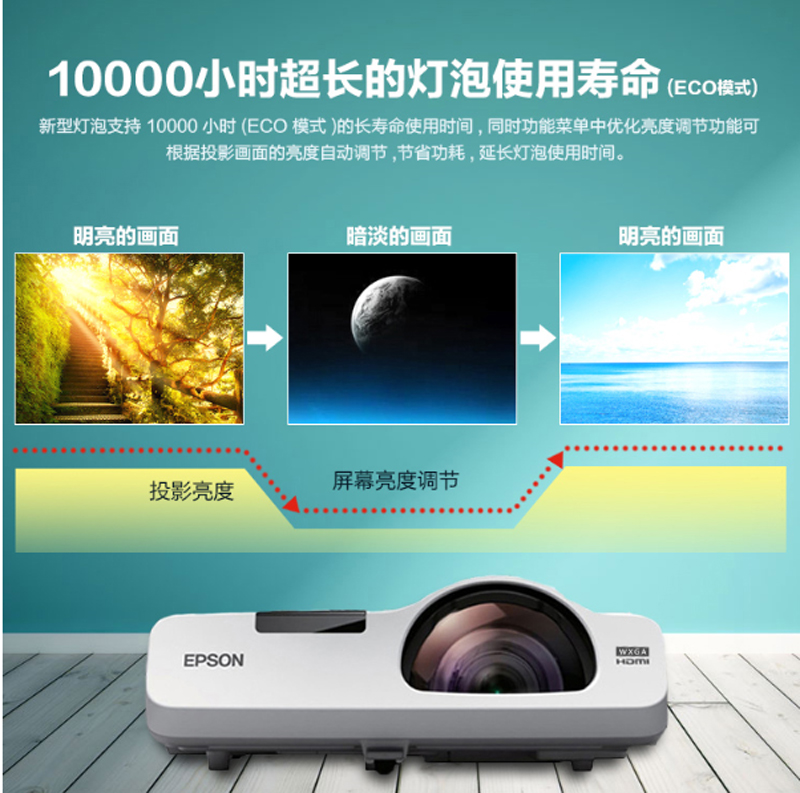 商品名称:爱普生(EPSON)-CB-535W-短焦投影仪-商用办公教育-(高清 3400流明 支持手机同步 含安装) 单位:台