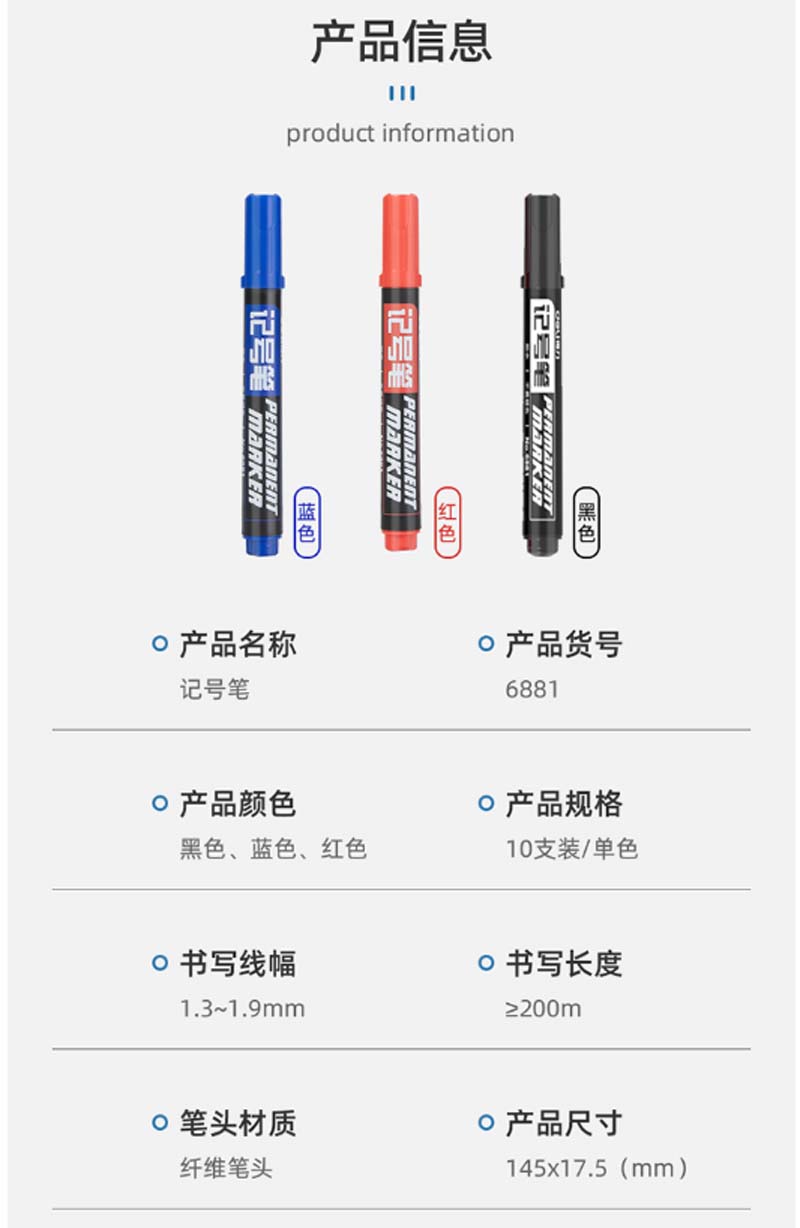 商品名称:得力 思达6881记号笔(黑) 10支起订(单位:支)