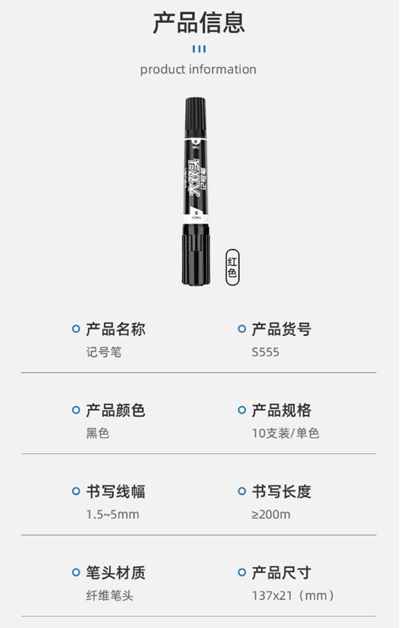 商品名称:得力 S555大双头记号笔(黑) 10支起订(单位:支)
