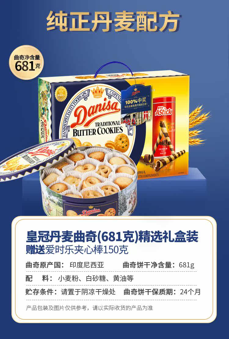 商品名称:皇冠 (Danisa)曲奇饼干 681g(单位:盒) 100盒起订