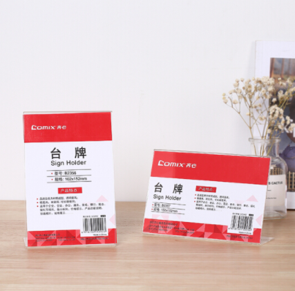 齐心(Comix)-B2357-高透明亚克力L型A6横式台牌桌牌-单位:个-起订量5个