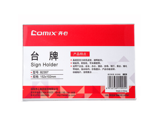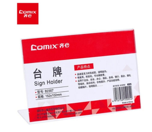 商品名称:齐心(Comix)-B2357-高透明亚克力L型A6横式台牌桌牌-单位:个-起订量5个