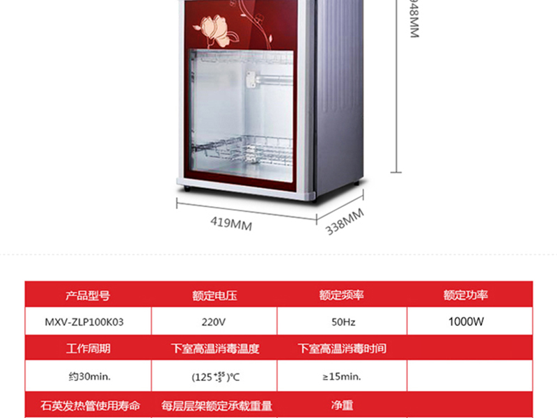 商品名称:美的 大容量家用消毒柜碗柜立式商用碗筷 MXV-ZLP100K03