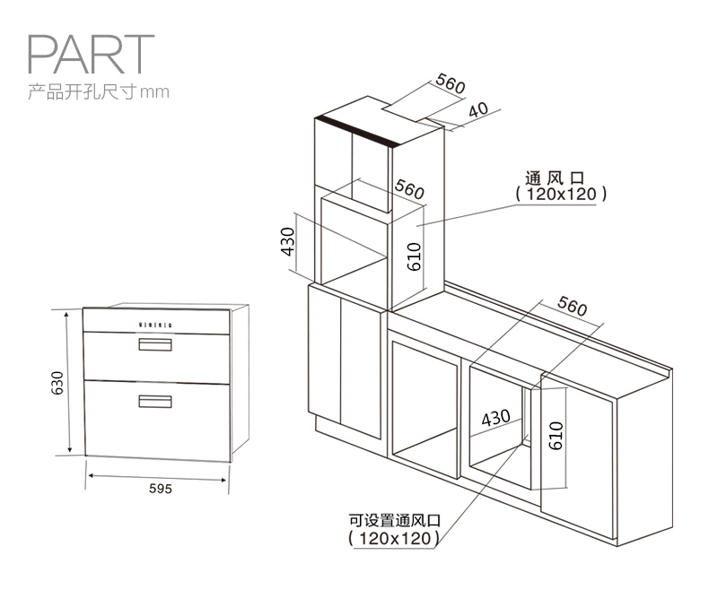 商品名称:美的 嵌入式高温消毒柜镶嵌式消毒碗柜 MXV-ZLP100Q33