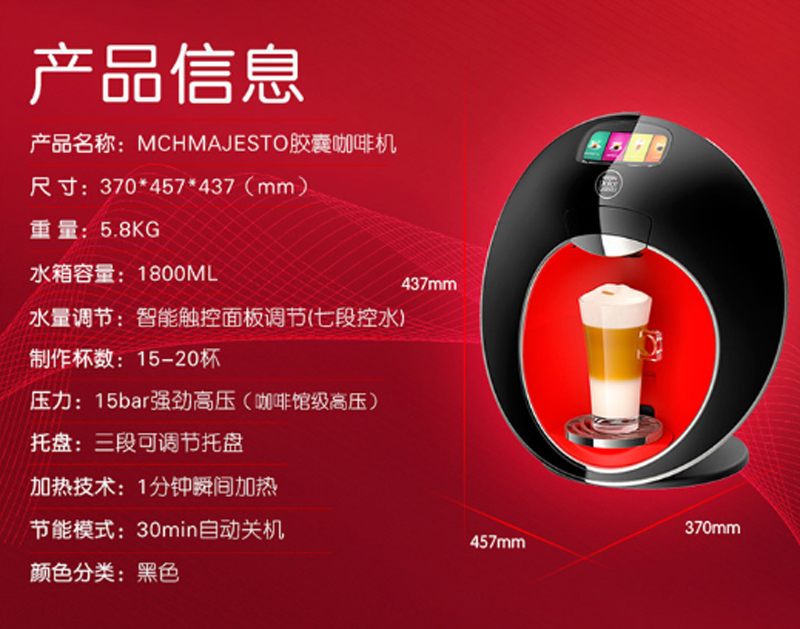 商品名称:雀巢 -Majesto9778-全自动胶囊咖啡机-红色-单位:台