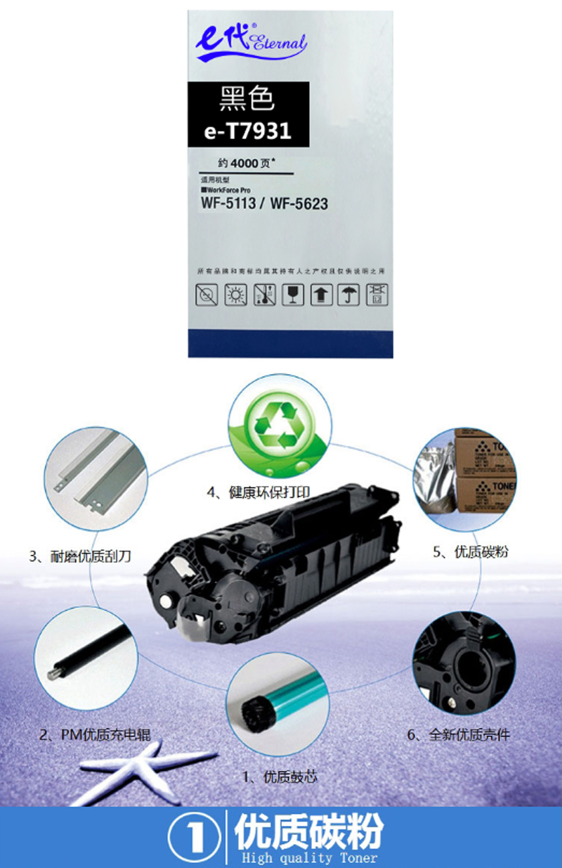 商品名称:e代经典T7931 爱普生墨盒黑色 适用WF5113/5623/5693机型单位:个