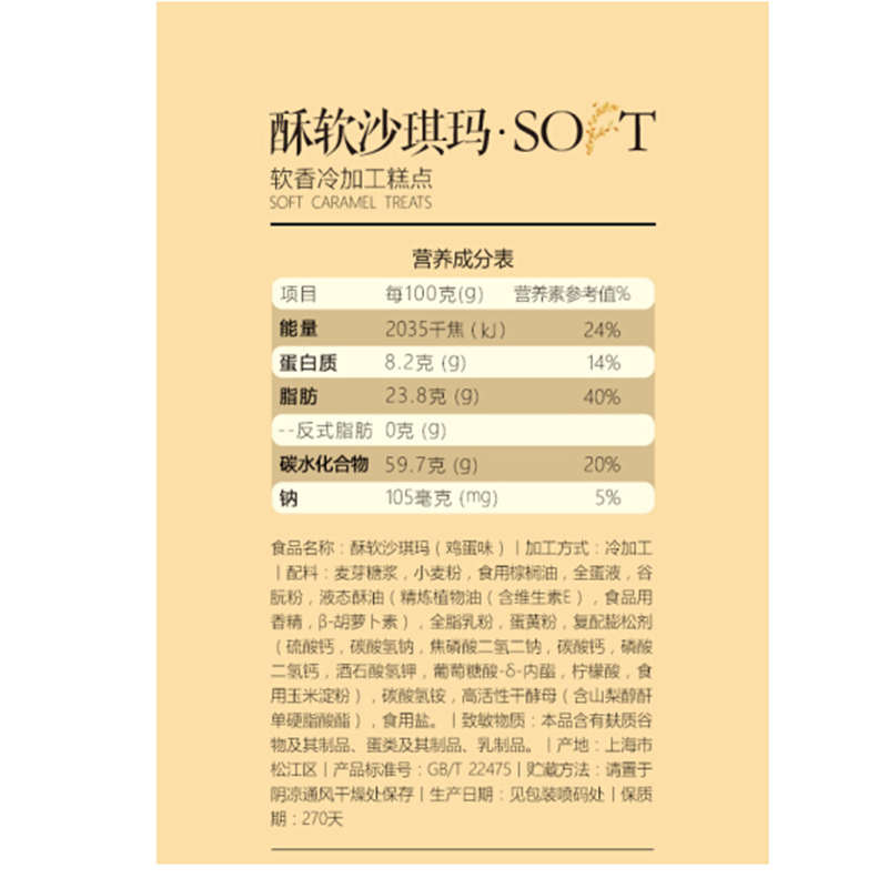 商品名称:三只松鼠 新奇特酥软沙琪玛鸡蛋味170g*3袋 单位:袋