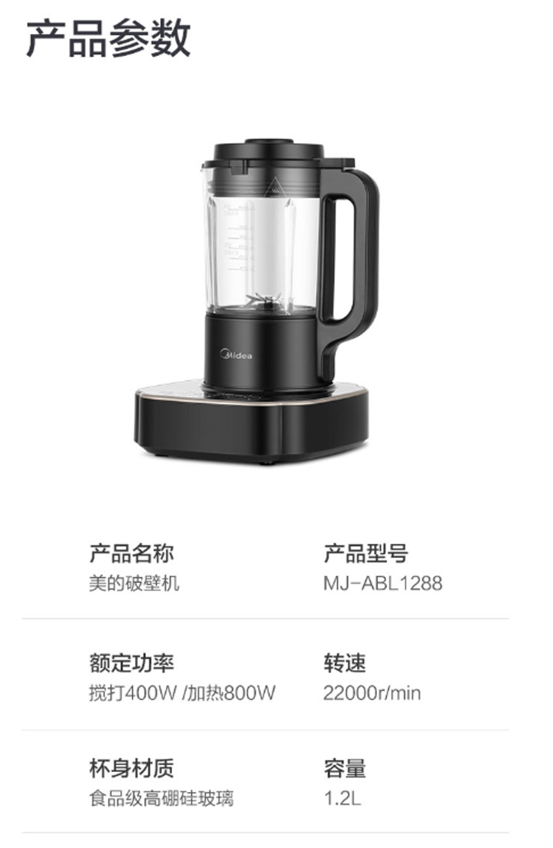 商品名称:美的(Midea)-MJ-ABL1288-多功能家用破壁料理机-单位:台