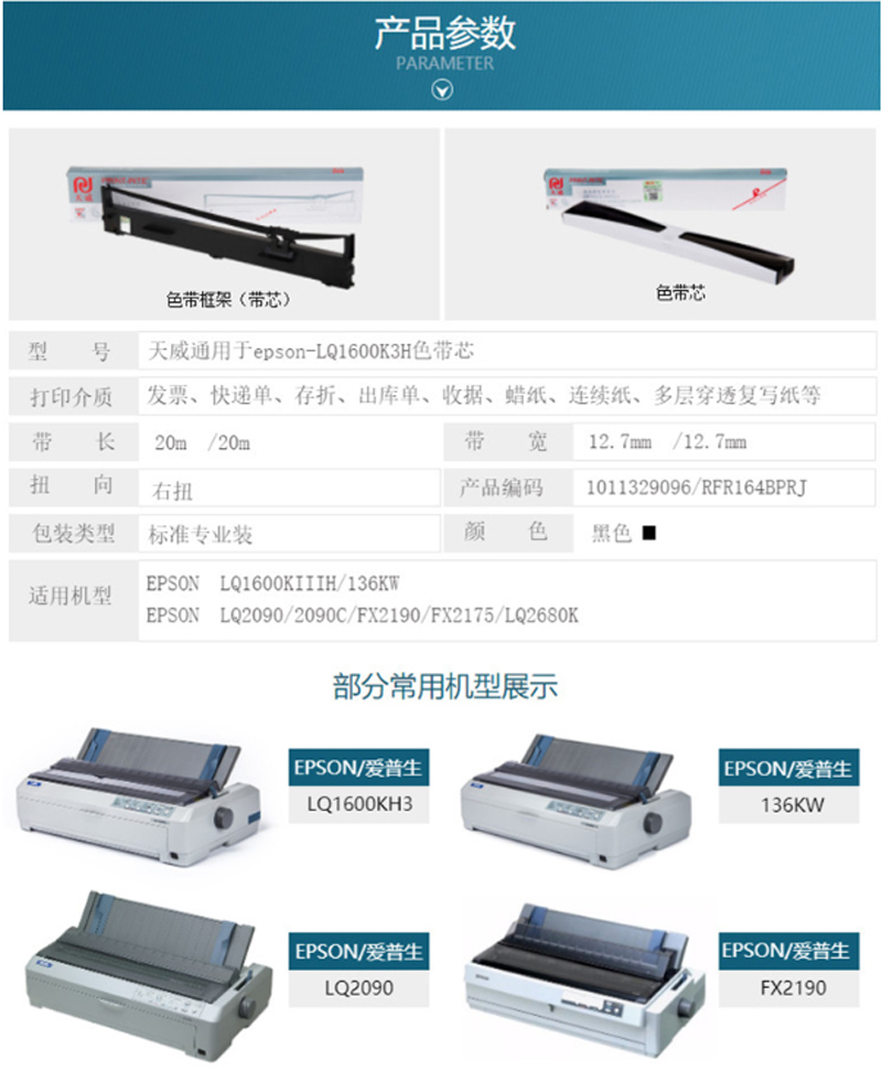 商品名称:天威(PrintRite)LQ1600KIIIH-色带芯-适用爱普生EPSON/LQ1600K3H/2680k/2090/FX2190(不含带架)-单位:支-起订量5