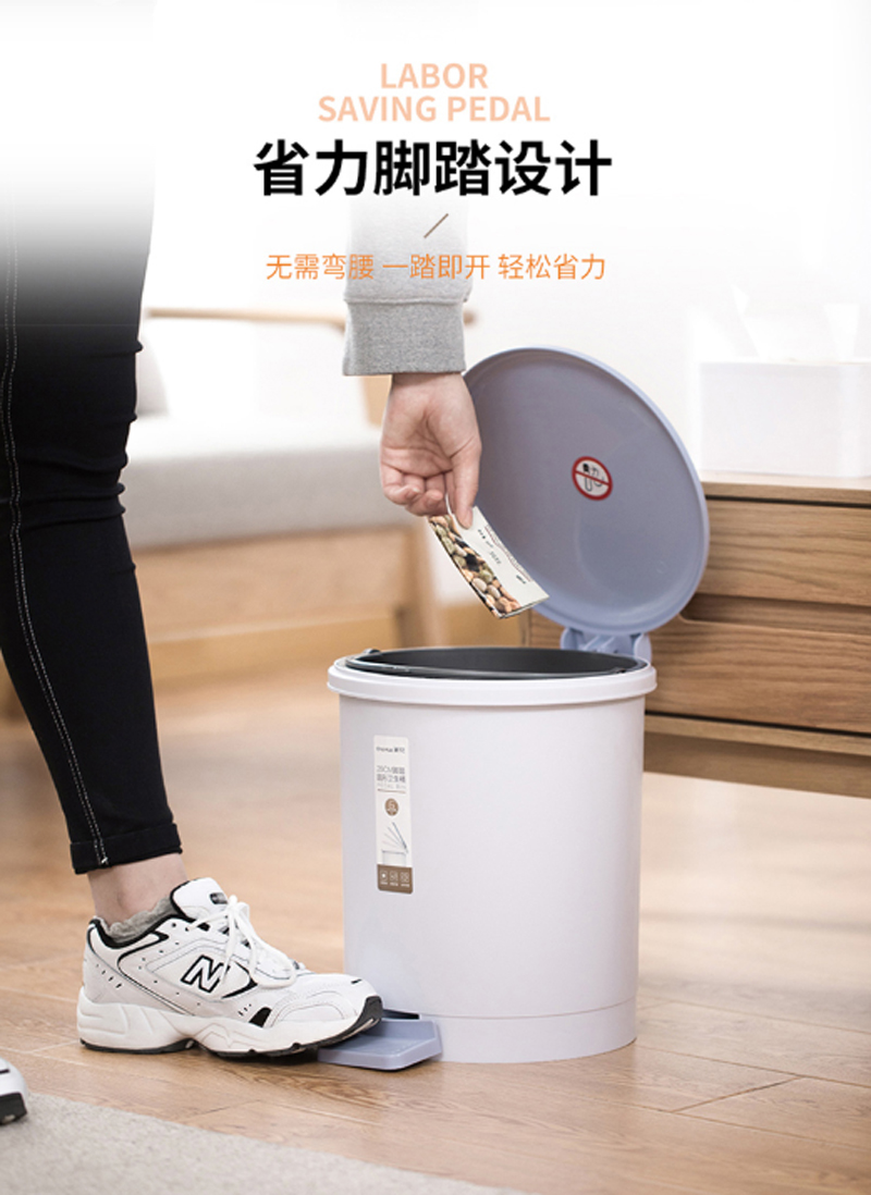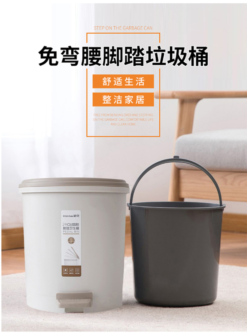 商品名称:茶花 垃圾桶 1502 带盖脚踏式6L家用厨房办公室塑料分类清洁收纳圆型废纸篓客厅卫生筒 (单位:个)