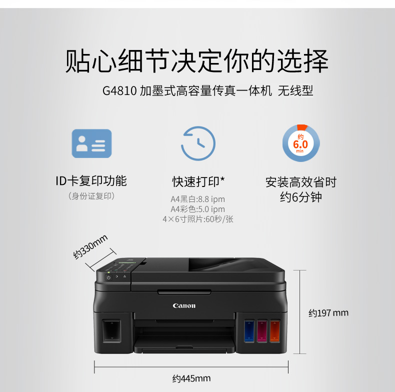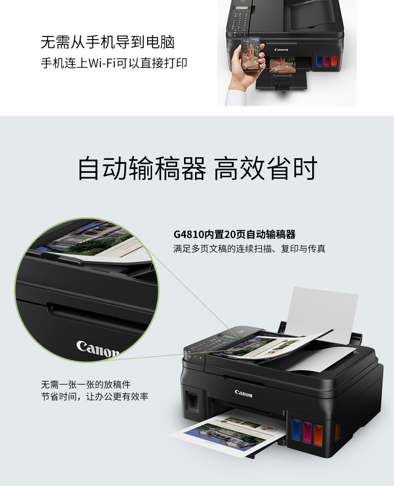 商品名称:★佳能/Canon 加墨式 高容量 传真一体机 无线型 PIXMA G4810