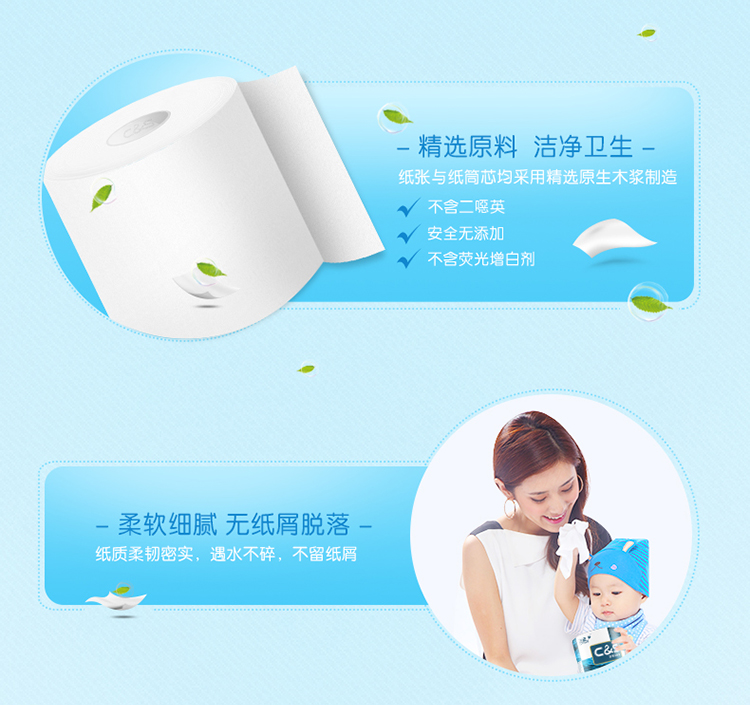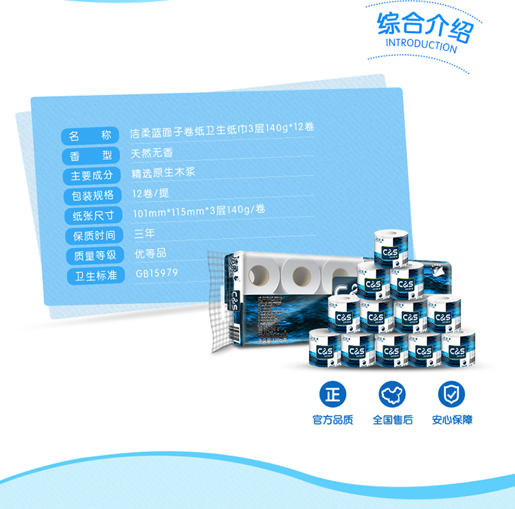 商品名称:洁柔-JJ041-12N-卫生纸-蓝面子有芯无香- 3层140克-12卷/提 1提 单位:提