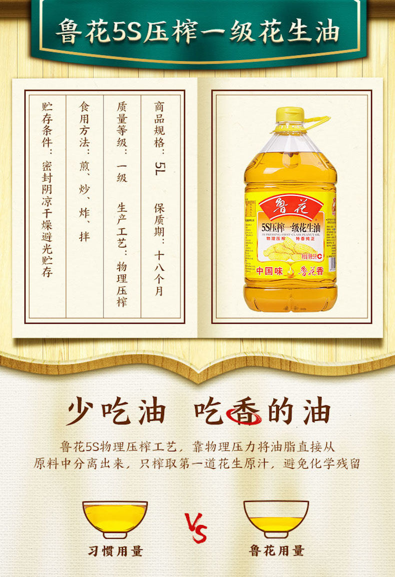商品名称:鲁花-压榨一级花生油-5L-单位:桶