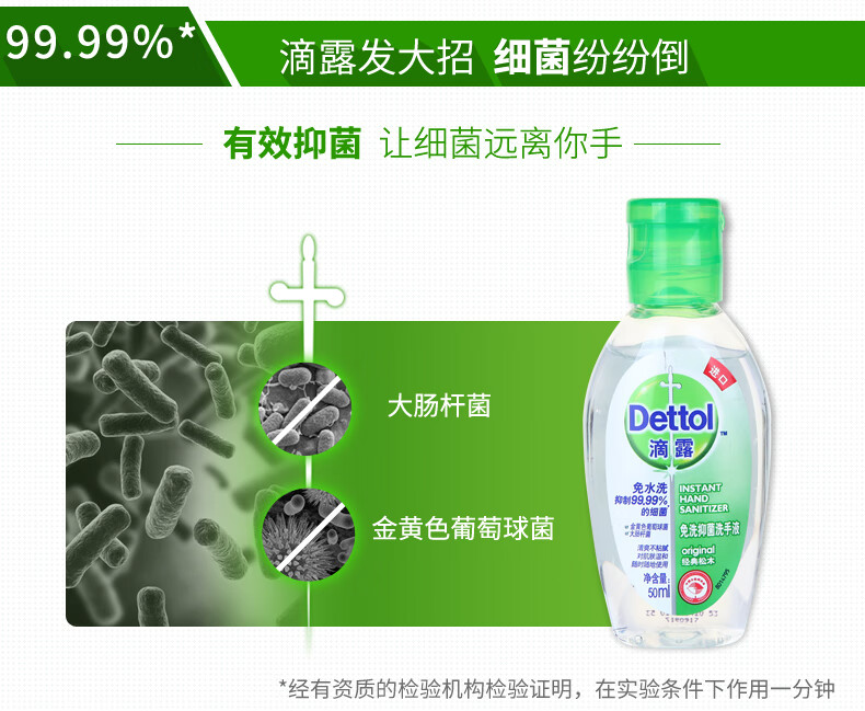商品名称:滴露-免洗抑菌洗手液经典松木便携装-50ml-单位:瓶-起订量10瓶
