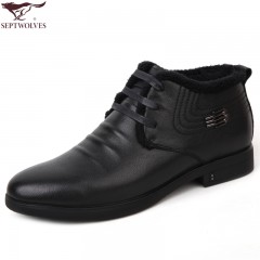 七匹狼 男鞋冬季新款毛绒内里时尚休闲保暖高帮系带男士皮棉鞋
