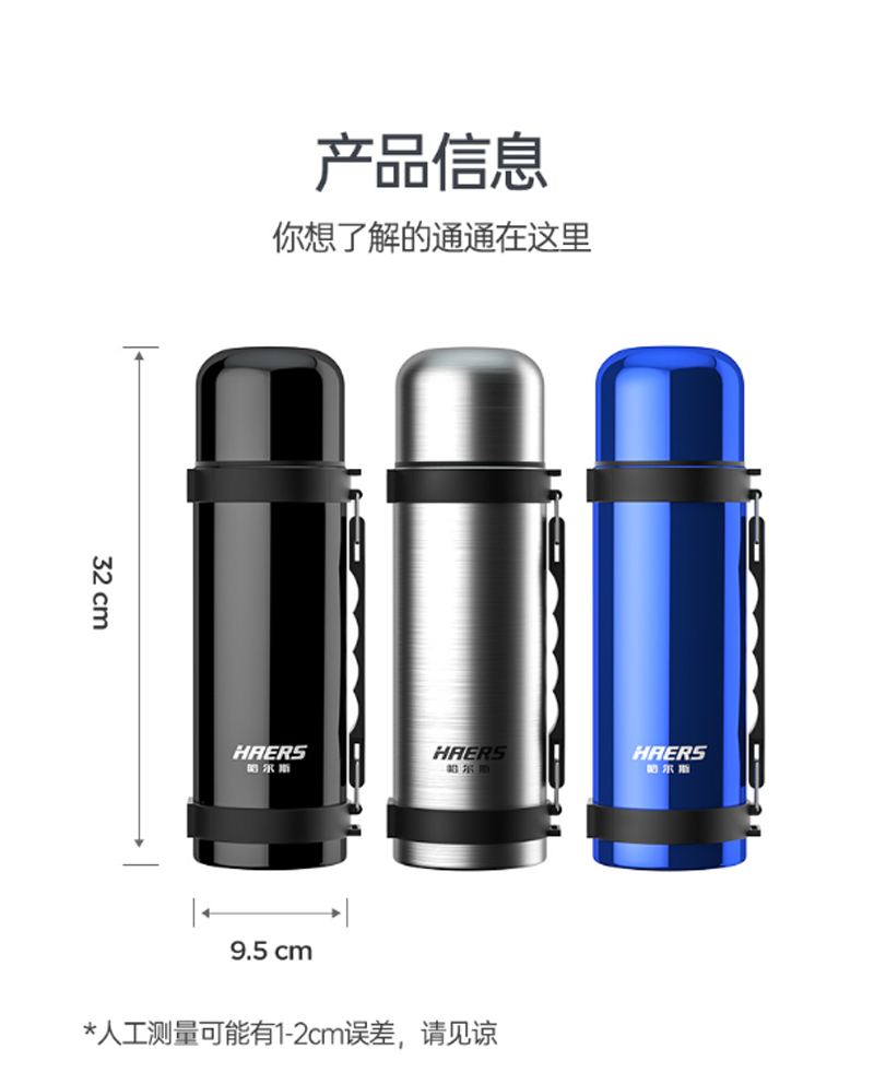 商品名称:哈尔斯-HY-1200W-2-旅游壶-黑色、本色、浅蓝色、深蓝色-单位:个