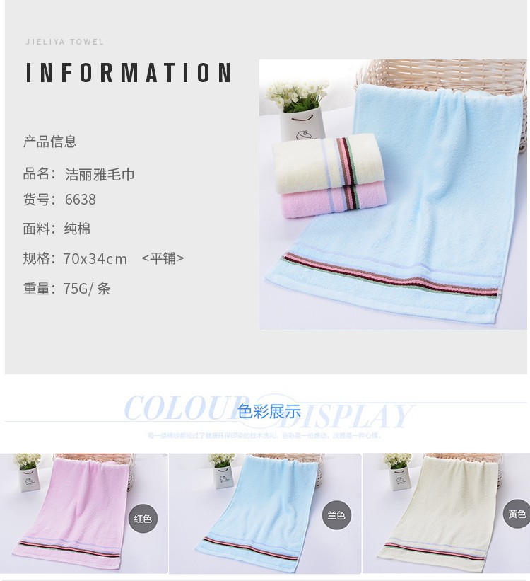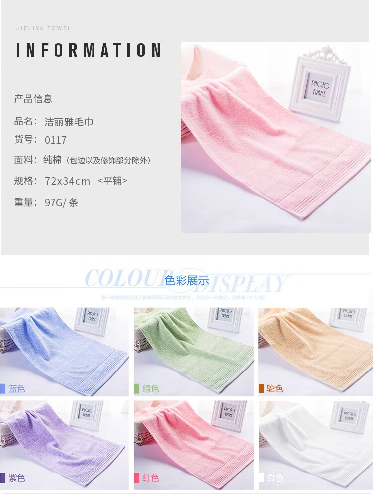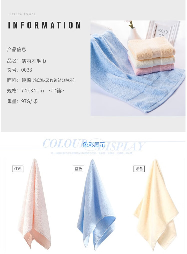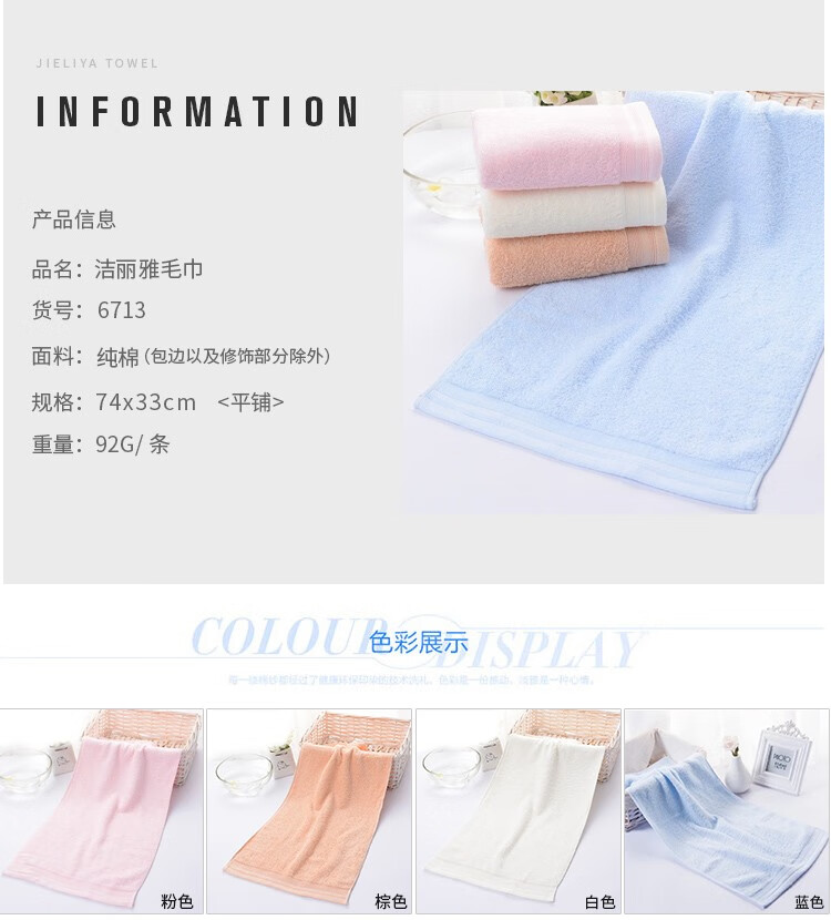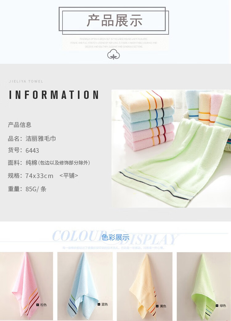 商品名称:洁丽雅 纯棉6443 74*33cm 约85g 10条/盒