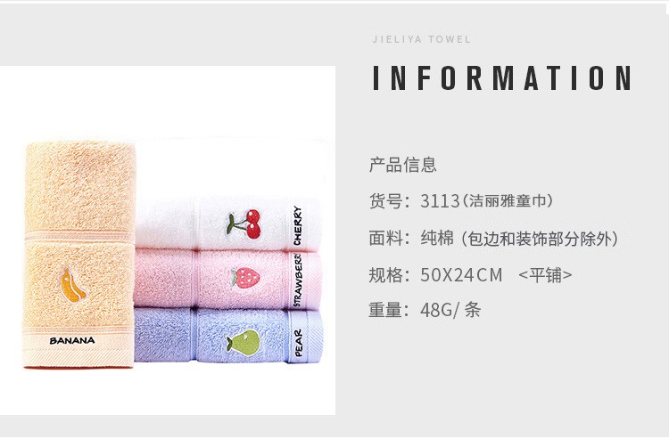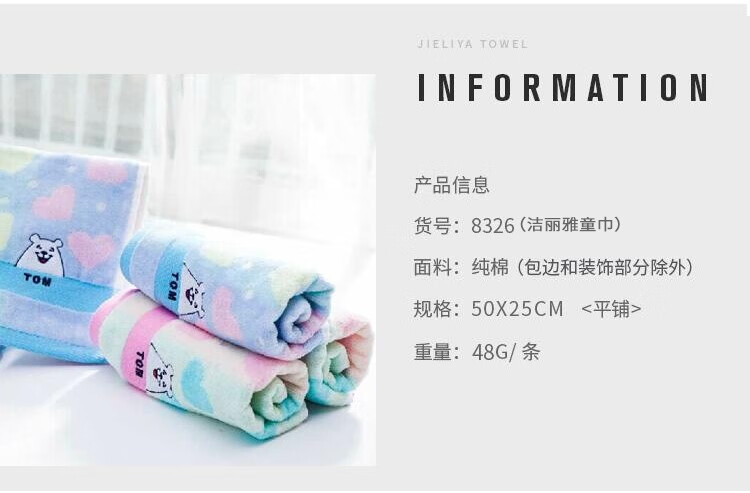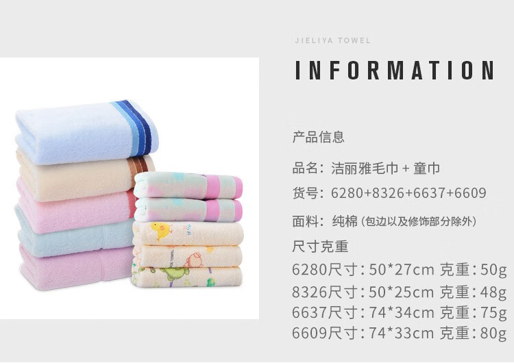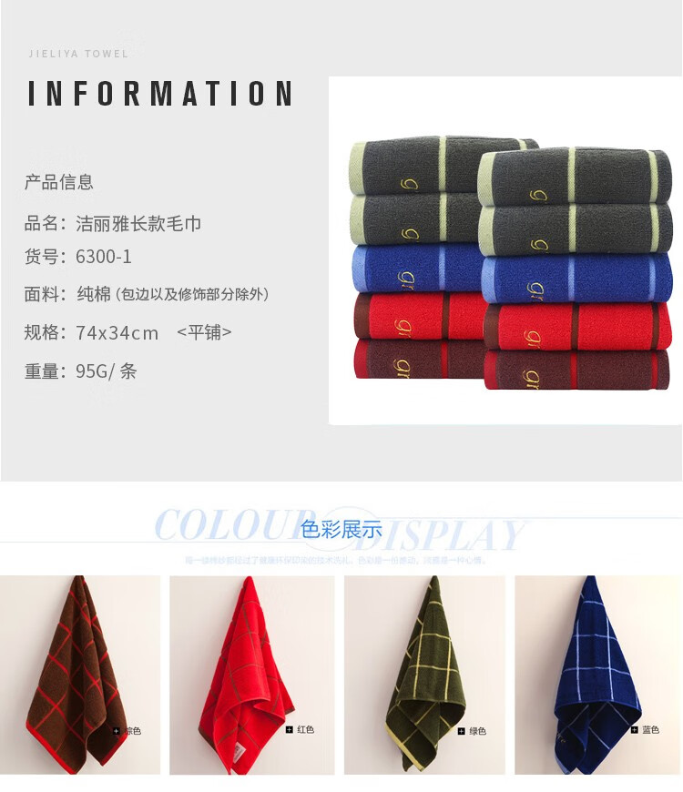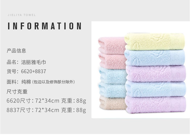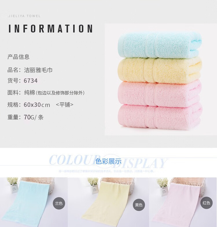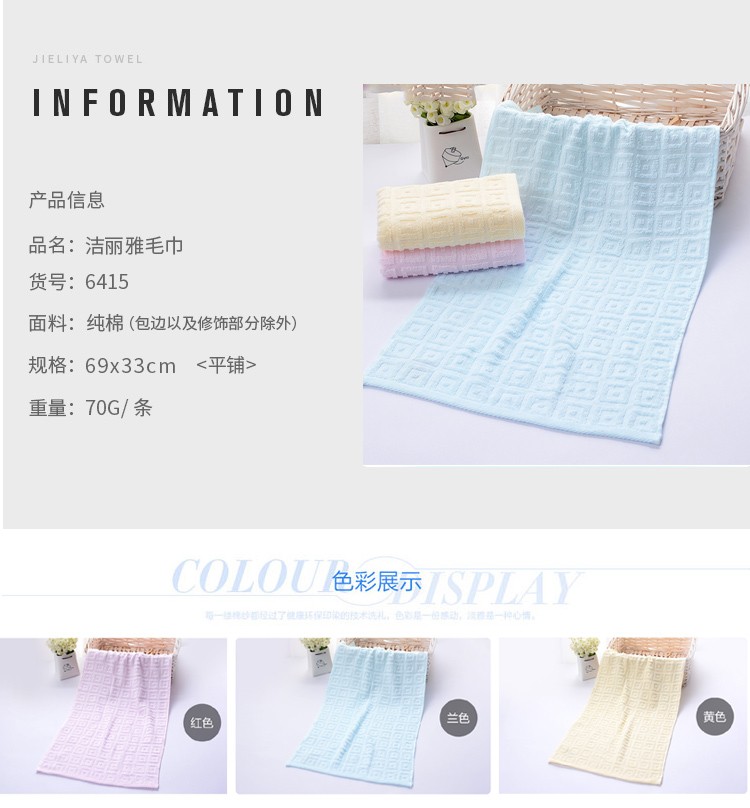 商品名称:洁丽雅 纯棉6443 74*33cm 约85g 10条/盒