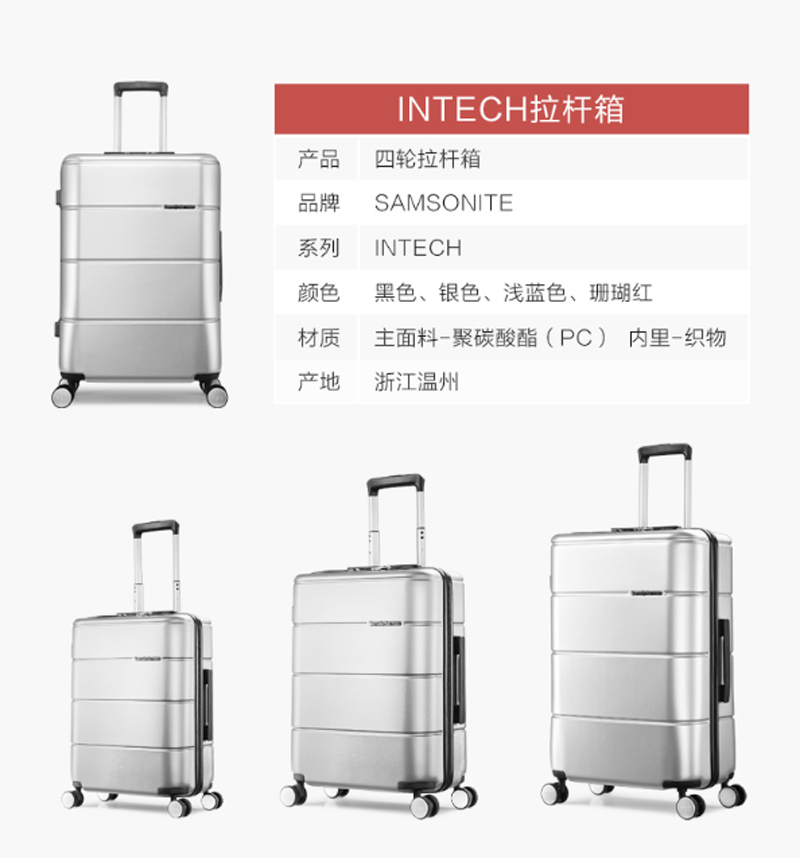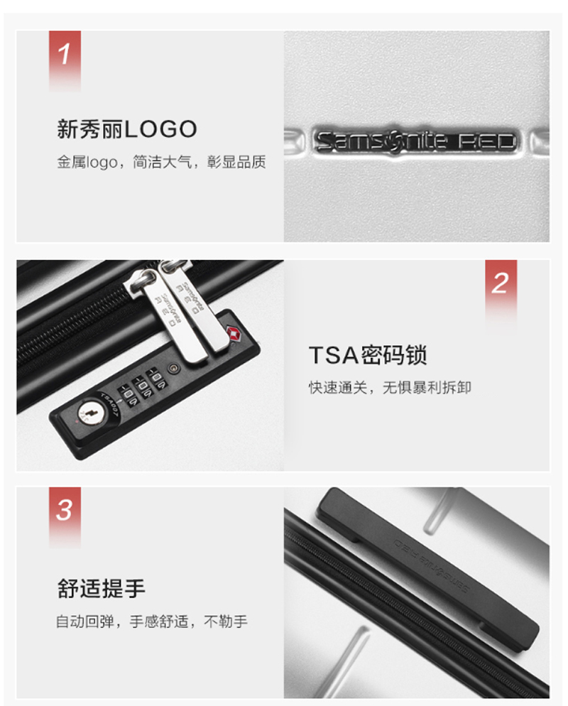 商品名称:新秀丽-TU2*25001- 拉杆箱万向轮行李箱旅行箱登机箱-银色-20英寸-单位:个