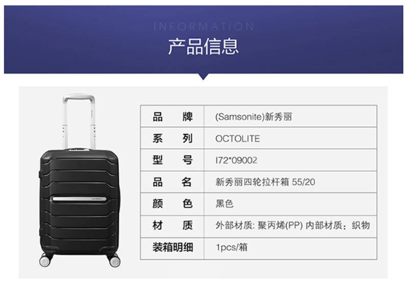 商品名称:新秀丽-I72*09002-行李箱登机箱拉杆箱旅行箱出差旅行携带-黑色-单位:个