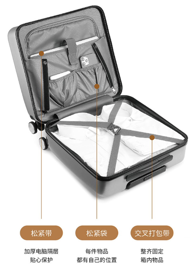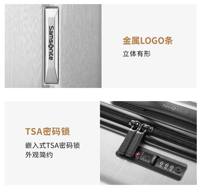 商品名称:新秀丽-TQ9*25004-拉杆箱密码箱行李箱登机箱-18英寸-银灰色-单位:个