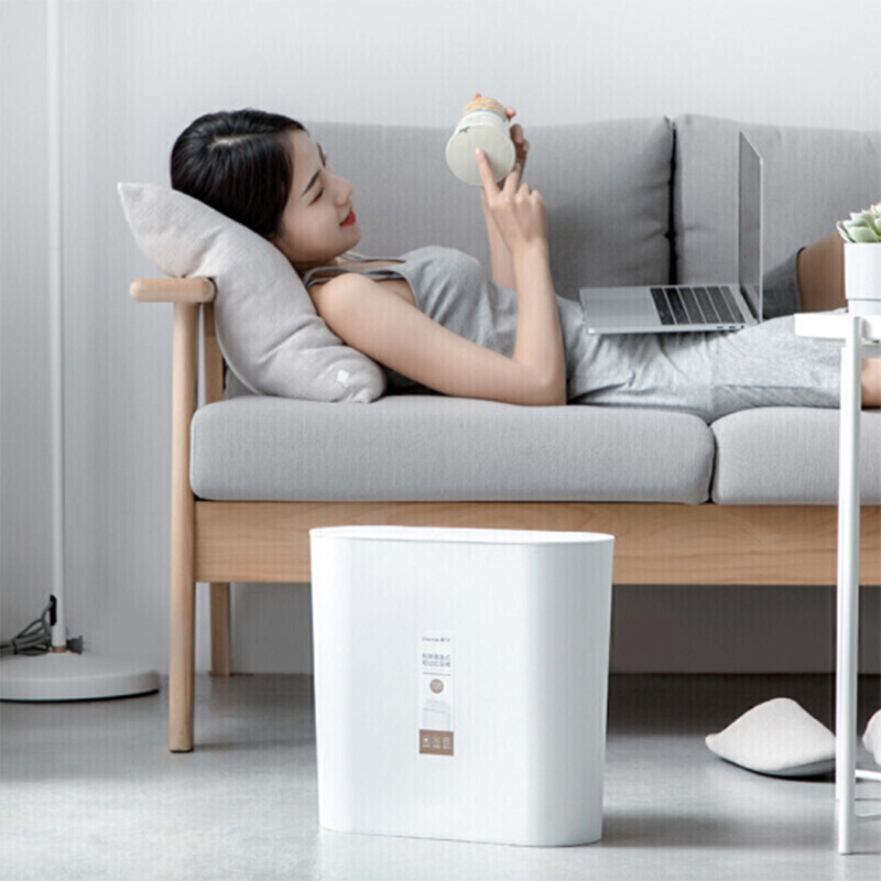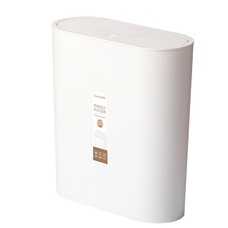 商品名称:茶花-204003-柯琳弹盖式窄边垃圾桶-32.0*14.0*30.5-磨砂白/灰棕色-单位:个-起订量10个