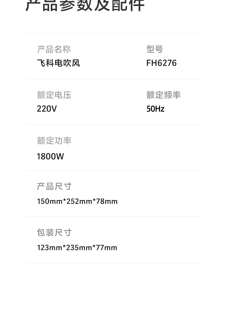 商品名称:飞科(FLYCO)-FH6276-电吹风-象牙白-单位:个