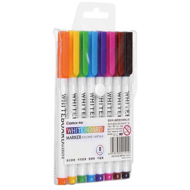 齐心(Comix)-彩色白板笔可擦-儿童绘画涂鸦-办公教学会议记号笔-8色装-单位:支-起订量3盒