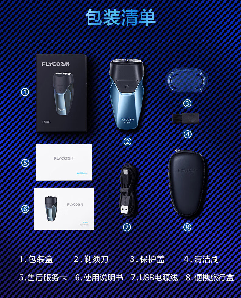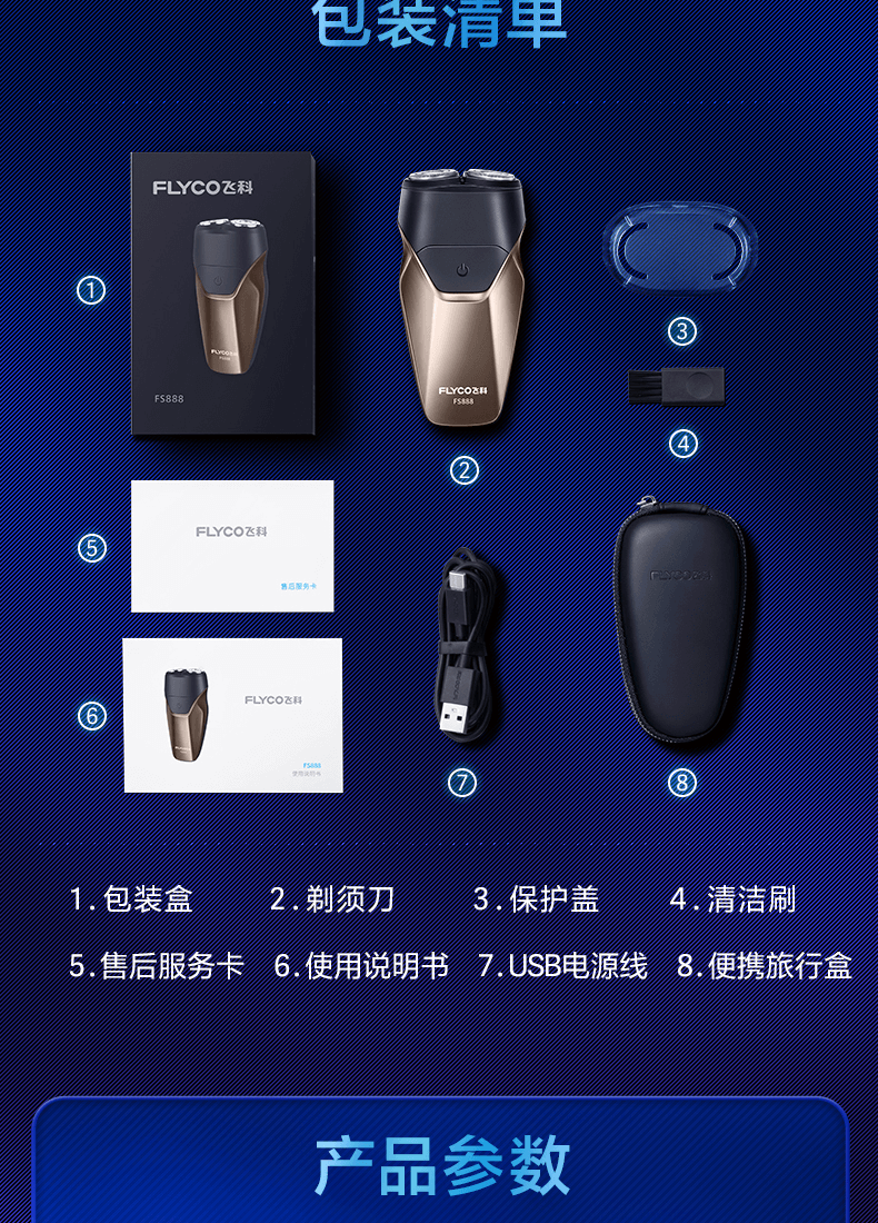 商品名称:飞科(FLYCO-)-FS888-电动剃须刀-琉璃棕-单位:个