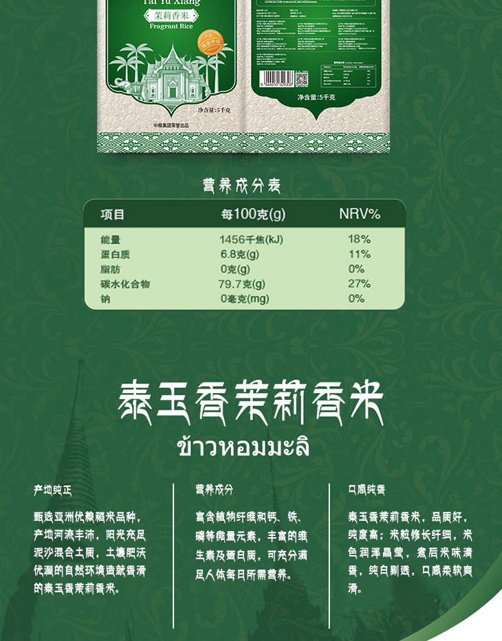 福临门-泰玉香茉莉香米-5kg -单位:袋-起订量50袋