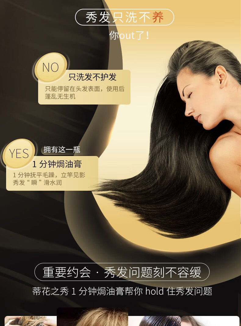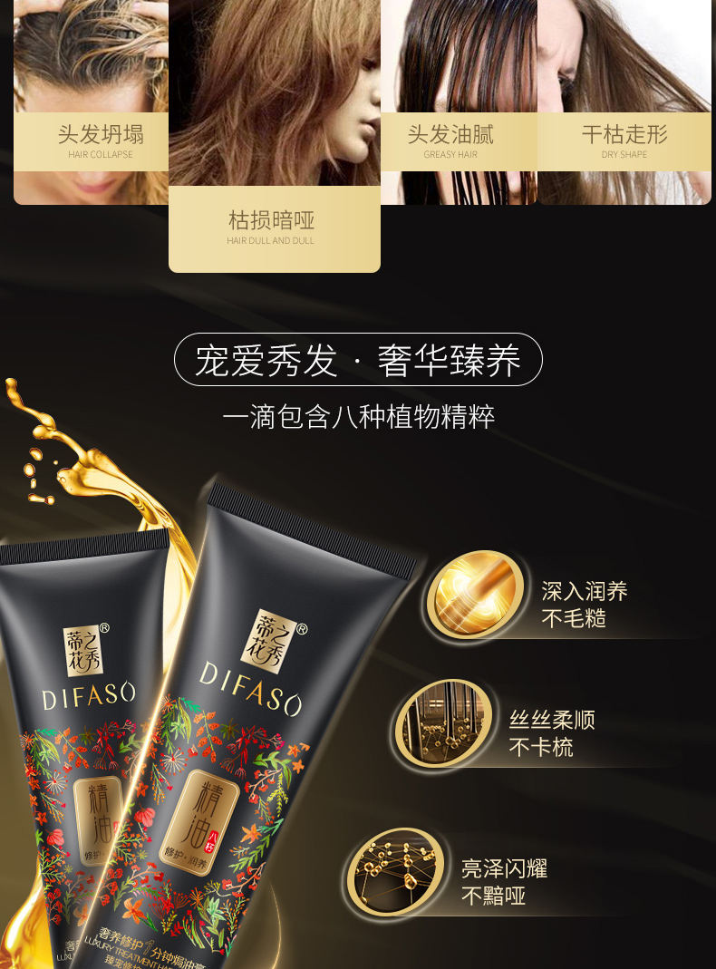 商品名称:蒂花之秀(DIFASO) 一分钟焗油膏 补水发膜精油护发素修护干枯毛躁柔顺 1分钟焗油养护*225ml