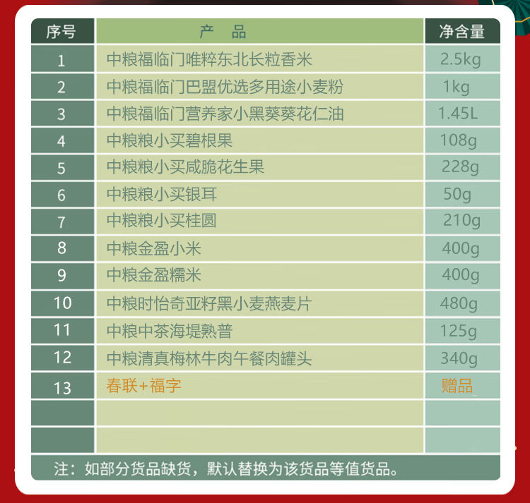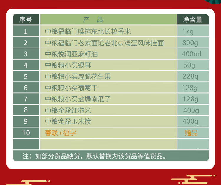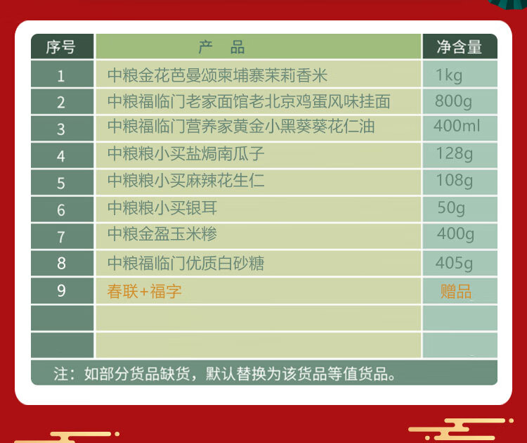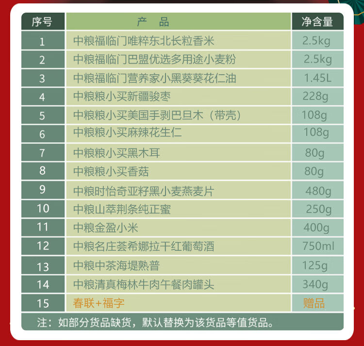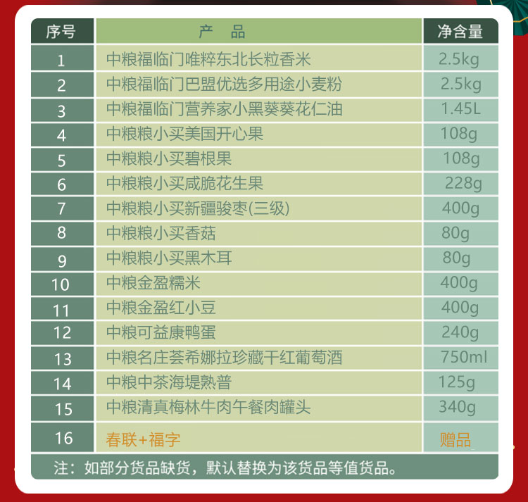 商品名称:中粮 家宴乐享团圆大礼包 G型